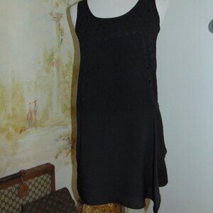 BCBG Generation Dress Womens Black Satiny Mini Wide Perforated Wrap Side Drape Boho