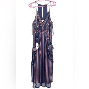 BCBG Generation Faux Wrap Striped MIDI Dress with Pockets Sz XS Halter Back