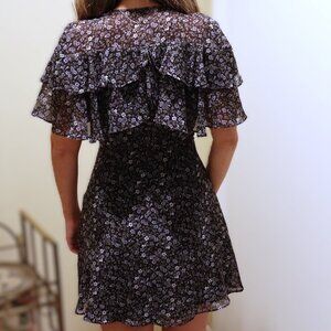 BCBG Generation / Mini Dress / Navy / Floral / Flowy Cape / V Cut / Like New