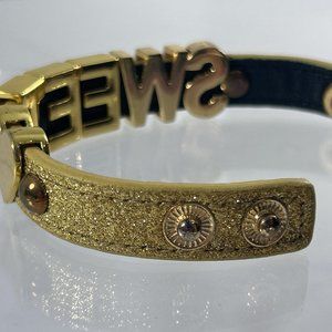 BCBG Generation Gold Tone Sweet Bracelet Slide Glitter Gangsta Mob Wife Cuff wit