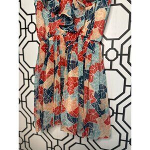 BCBG Generation Ladies Spaghetti Strap Flowy Flare Geometric Mini Dress SZ XXS