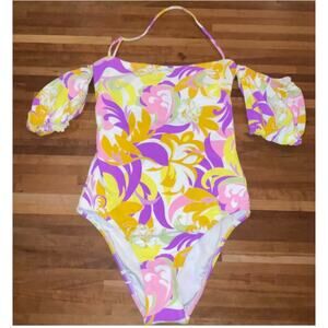 BCBG Generation Mod Purple Swirl Off The Shoulder One Piece Swimsuit Large NWt - New with tags Retails $114