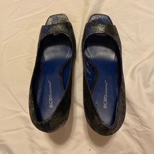 BCBG Generation Open Toe Heels Size 8 Blue Black