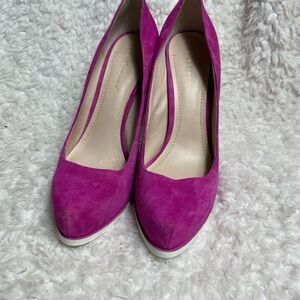 BCBG Generation Pinkie leather suede hot pink slip on heels pointed toe Size 9.5 pre owned in good used condition signs of wear on the outer soles see all pictures any questions please message.