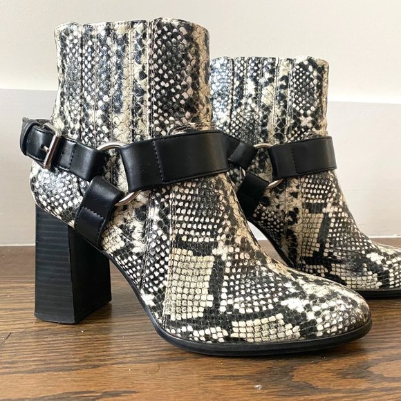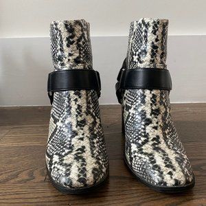 Black/White Faux Python print leather bootie.