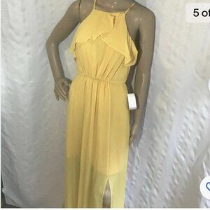 🆕 BCBG Generation Ruffle-Trimmed Chiffon Maxi Dress Yellow size 12