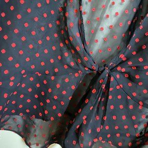 BCBG Generation Sheer Black Top with Red Polka Dots