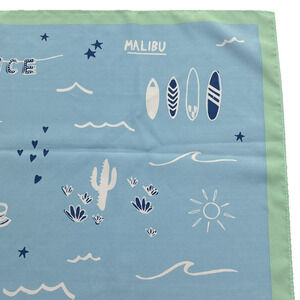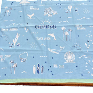 Fun BCBGeneration Sky Blue & Mint Green "California" sight seeing scarf. A Silky Feel easy care polyester fabric printed with all the key tourist attractions in California including Venice Beach, Santa Barbara and Malibu to name a few. Super cute with Preppy vibes - this square scarf is the perfect accessory for a casual summer day - add to a neckline, hatband or bag strap and wait for the compliments to roll in! Gently worn - no flaws - so cute!
