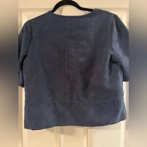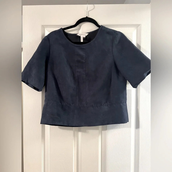 BCBG Generation Womens Faux Suede Top Blouse Blue Size Medium Shirt Short Sleeve