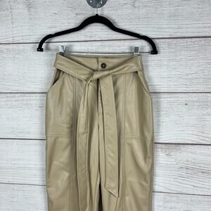 BCBG Generation Women's Khaki Faux Leather Tie Waist Pants Size XS