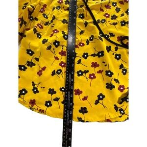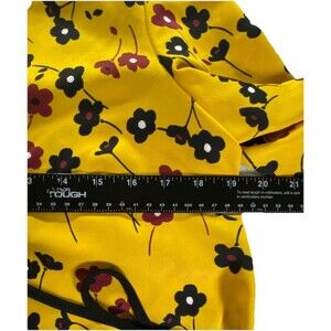 BCBG Generation Yellow Floral Wrap Blouse Top M Medium Tie Cuffs *READ