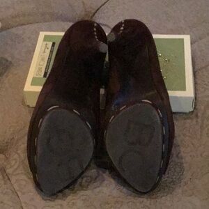BCBG Generation brown suede platform,peep toe heel with contrast stitching