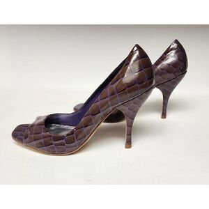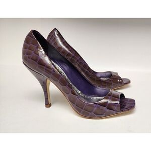 BCBG Girl Ariel Open Peep Toe Purple Patent Leather Stiletto High Heels Size 8B.