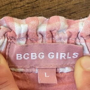 BCBG Girls Gingham Skirt sz Large White/Pink Pull On Elastic Waistband Lined