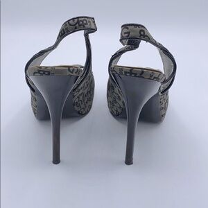 BCBG Girls Black and Tan High Heels Size 8 Used-Good Condition Open Toe Monogram Sling Back