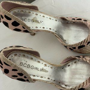 BCBG Girls Pink Leopard Pony Hair Heel Sz6