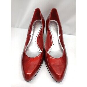 BCBG Girls Sexy Red Leather Shimmery Stiletto Heels Sz 8 B