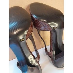 BCBG Girls Size 8.5 Azria Croc-Embossed Brown Leather Slingback Heels