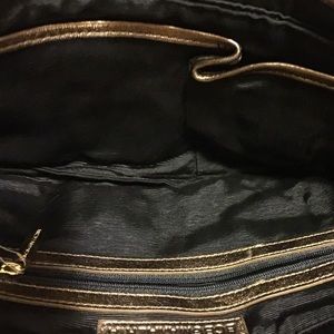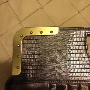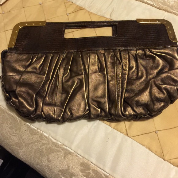 Gold with gold hardware on the edge. Nice evening bag. Brand new.