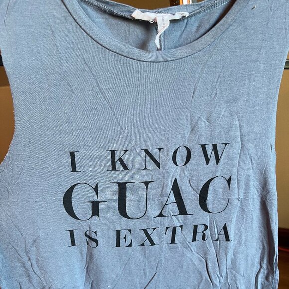 BCBG Graphic Muscle T "I Know Guac is Extra" Blue Size XS