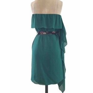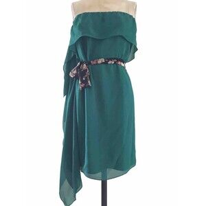 BCBG Green Silk Chiffon Sleeveless Short Mini Strapless Cocktail Dress - XS