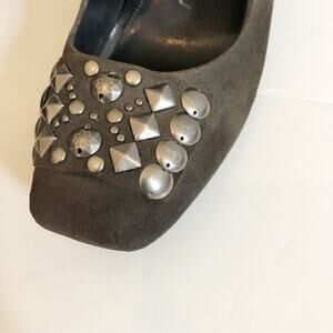 BCBG Grey Suede Pumps Silver Studs High Heels Leather Designer Retro 9.5 NWOT