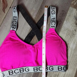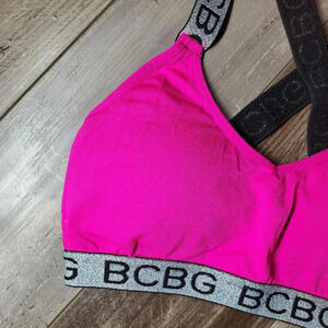 BCBG Hot Pink Sports Bra Size Small Wide Shimmery Straps