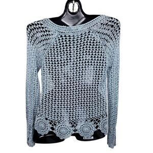 BCBG Ice Blue, Hand Crochet Sweater/Top