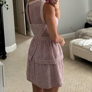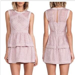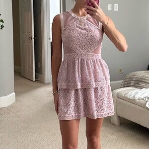 Stunning pink mini dress with mesh cut out, lace details. Tiered skirt, perfect condition