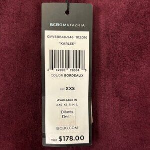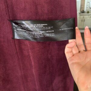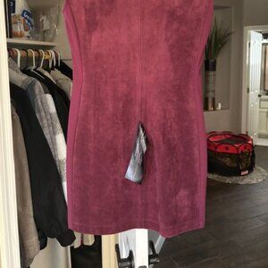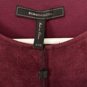 Size XXS - New with Tags and rip tag still attached to back. Never worn . Color is Bordeaux (wine colored). Perfect for fall with boots. Sleeveless faux suede mini dress with zippers at shoulders. Trendy BCBG brand, perfect condition and great for a fall night out . Super cute with tights and boots.