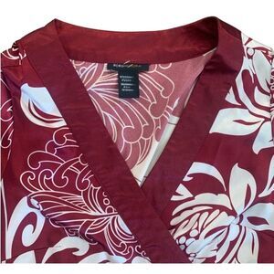 BCBG Kimono style wrap side tie red/cream flowered silk top