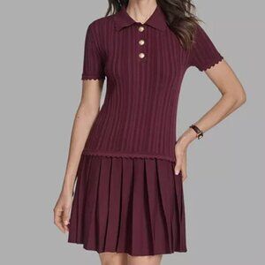 Combining style with a touch of sportiness, this mini dress from BCBG showcases a crisp collared neckline, short sleeves, and a relaxed drop waist. Finished with a three button closure and a playful pleated skirt, it brings a polished vibe to any look.