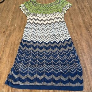 Stylish and comfortable, this green and blue chevron swim cover-up is perfect for a day at the beach or pool. Enjoy the vibrant colors and chic design.