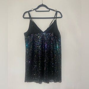 BCBG LIKE NEW black sequin strappy slip mini dress size M