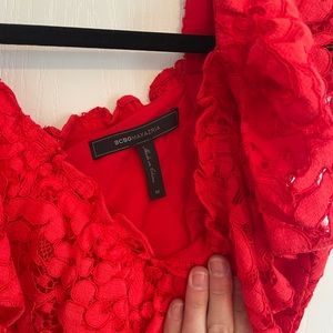 Gorgeous lace dress - perfect for a wedding or event. Worn 1x & dry cleaned. Color is a bright, beautiful red.
