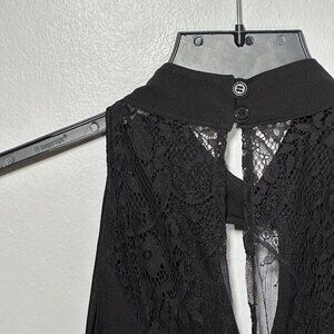 BCBG Lace-Back High Neck Sleeveless Peplum Top – Black (Size S)