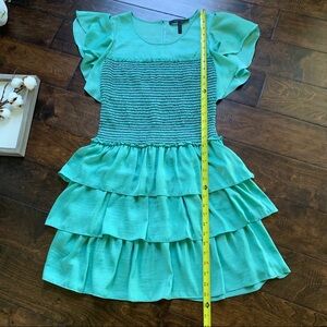 {BCBG} Larra Aqua Smocked Vintage Mini Dress Fit Flare Ruffle Skirt Size Medium