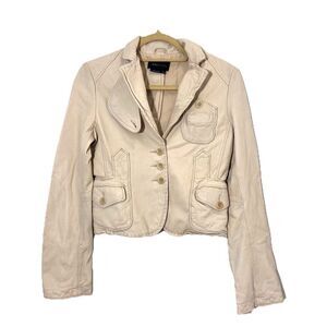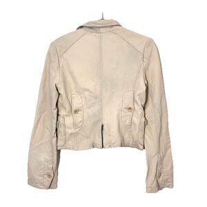 BCBG Leather Jacket Womens XS Y2K Preppy Waist Length Multi Pockets Beige