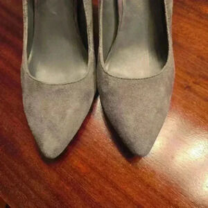 BCBG Leather Suede Ankle Strap Two Tone High Heels Gray Black Size 10