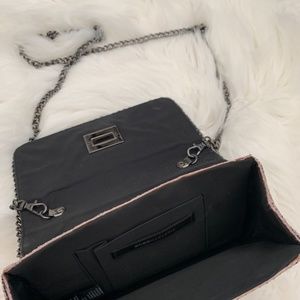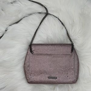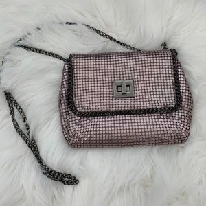 Super cute and fashionable light pink mesh and gunmetal chain purse. Very versatile and cool! Removable chain strap. Can be used as a clutch or shoulder/crossbody.