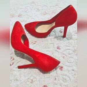 πBCBG Like New Red Suede Stiletto Close Toe Pointed Heelsπ