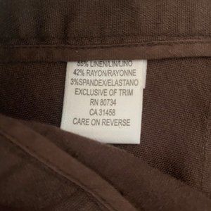 Excellent condition. Barely wore. Thin lightweight linen material. Dark brown color.