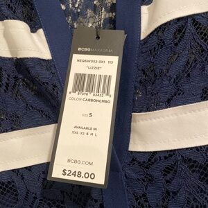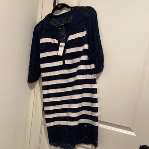 BCBG Maxazria Navy & White Striped Lace Dress (NWT) S