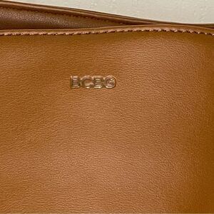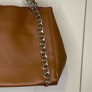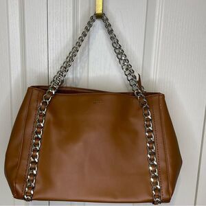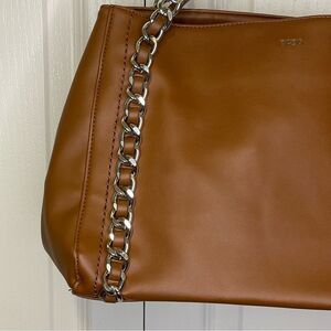 BCBG Lucy Satchel Tote Purse Camel Tan with Silver Chain Detail