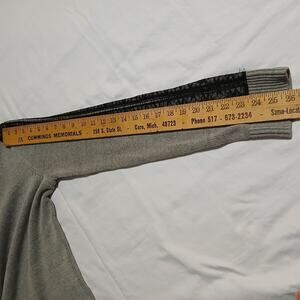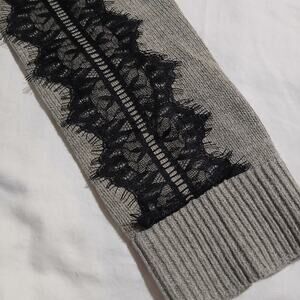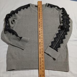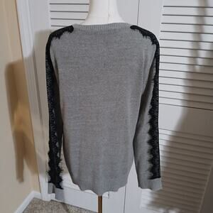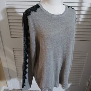 BCBG MAX AZARIA Med Grey Black-Lace-Accent Long-Sleeved Cotton Blend Sweater