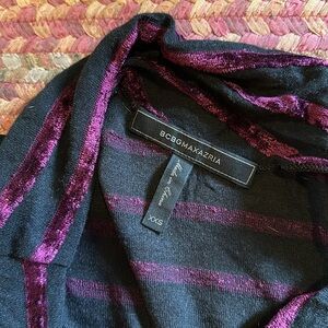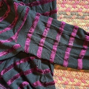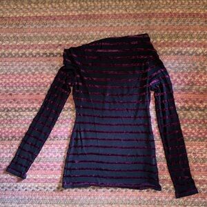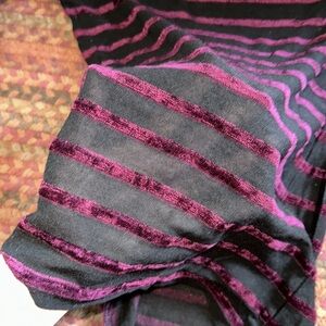 BCBG MAX AZRIA BLACK MESH & MAROON VELVET STRIPE LONG SLEEVE BOAT NECK BLOUSE