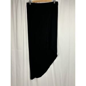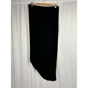 BCBG MAX AZRIA L Black Stretch Knit Asymmetric Hem Faux Wrap Skirt
