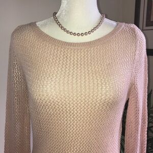Fabulous crochet sweater in a gorgeous peach with lurex sheen. Beautiful top in a quality acrylic and wool blend. Excellent Condition. XS