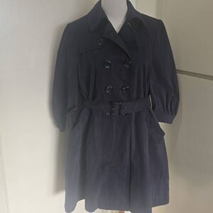BCBG MAX AZRIA NAVY "ALEXANDRA" Trench Coat, 3/4 SLEEVE, Swing Back, NWT, L