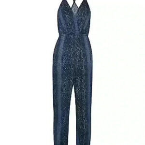 BCBG MAX AZRIA SNAKE-EMBOSSED JUMPSUIT BLUE PYTHON GII9267480 SIZE XXS